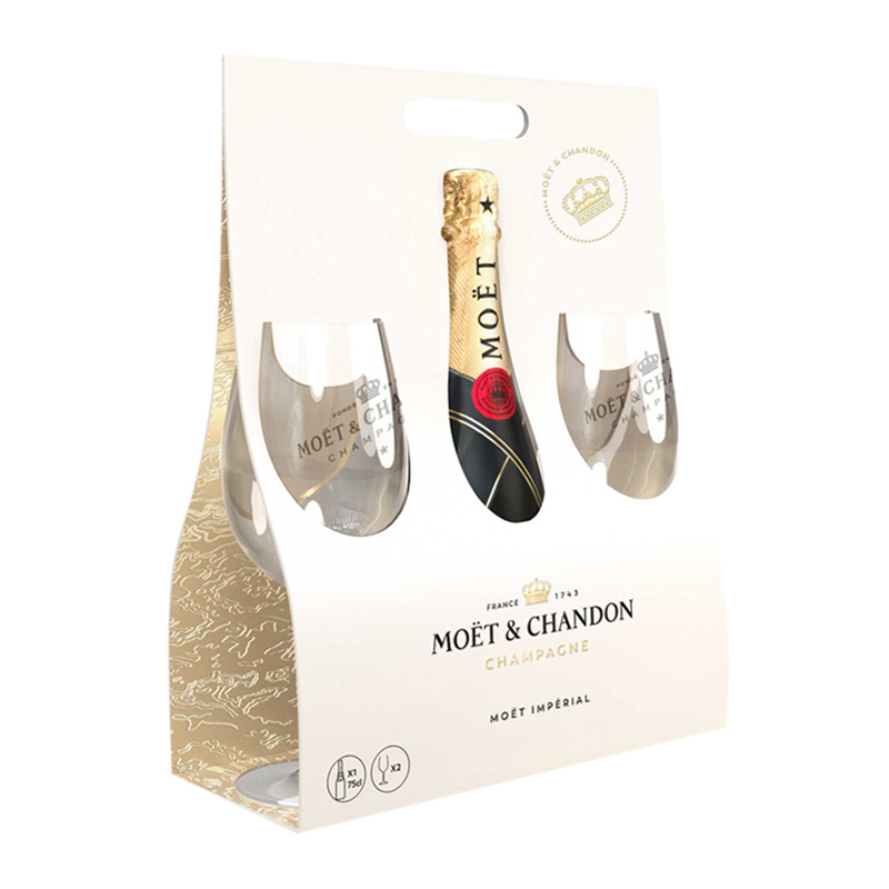 Make your day with this Moët&Chandon Impérial gift set and 2 glasses. Created in 1869, Moët Impérial is an iconic champagne that embodies Moët&Chandon's unique style of bright fruitiness, seductive flavours and elegant maturity. A blend made ...