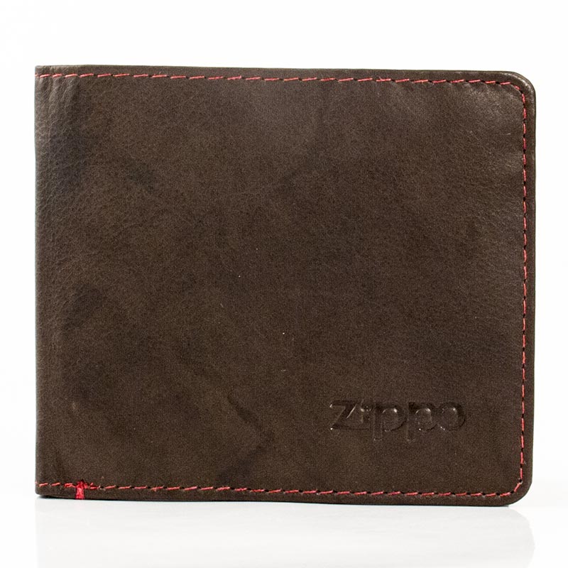 Zippo men's leather wallet, horizontal, mocha with red stitching