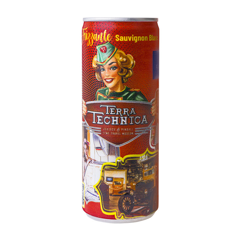Terra Technica Frizzante Sauvignon Blanc is a ready-to-drink light and refreshing sparkling wine with the varietal character of Sauvignon Blanc in a practical can, suitable as a stylish souvenir from the Terra Technica Museum.
