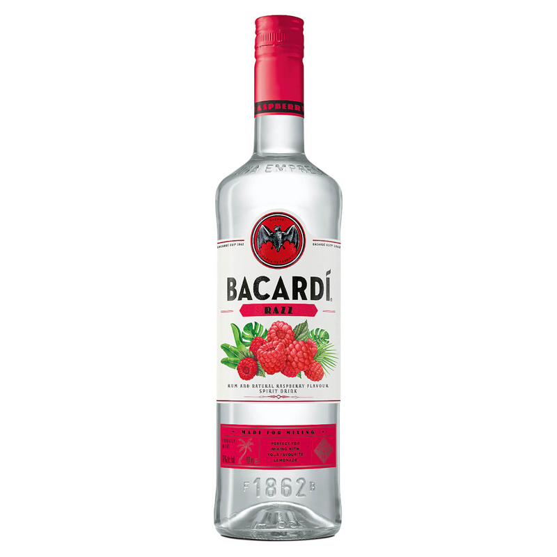 Bacardi Razz Raspberry is a fresh combination of premium white rum and rich raspberry flavour. This unique rum opens up endless possibilities for creating cocktails and mixed drinks that bring the taste of the Caribbean sun right into your home.