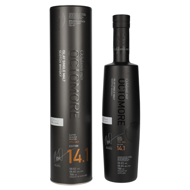 Bruichladdich Octomore 14.1 is a dynamic whisky of light amber colour distilled from 100% Scottish Concerto mainland barley. It has a delicate and complex balance between intense smoke, malt, cask influence and the maturation process, creating an intoxicating drinking experience.