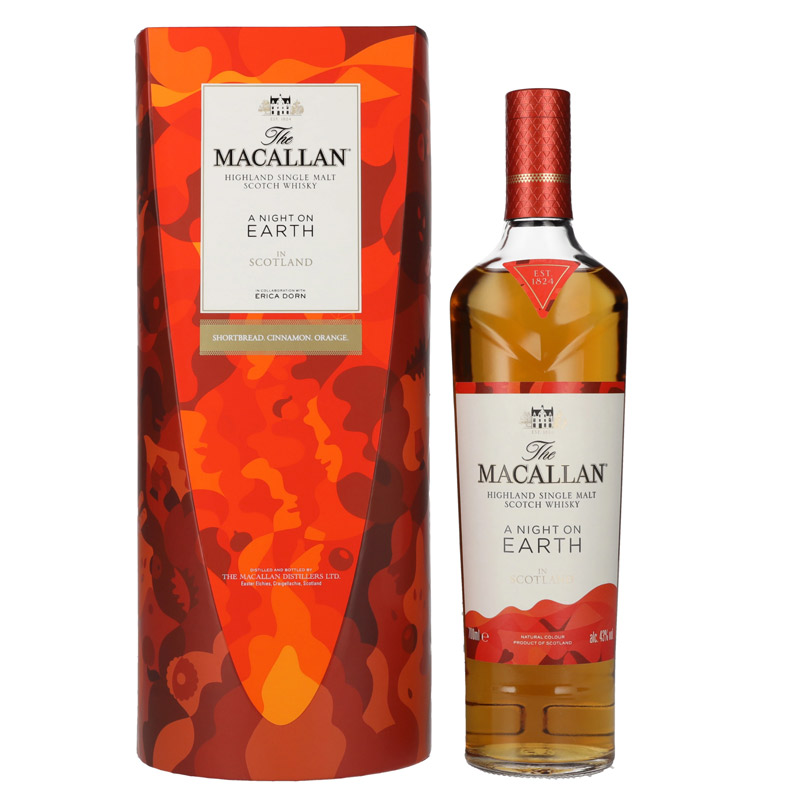 Macallan A NIGHT ON EARTH Highland Single Malt whisky with an amber colour has been created exclusively for New Year's Eve, known in Scotland as "Hogmanay". It is produced in a variety of casks at the distillery to resemble the usual Scottish New Year's Eve treat.