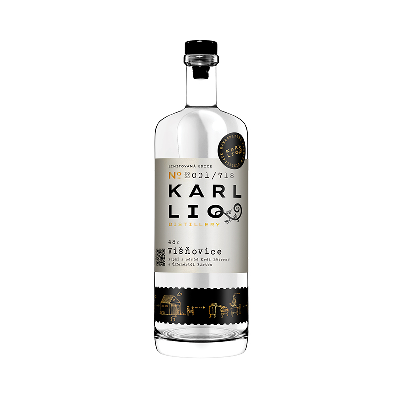 Karl LIQ Višňovice - kupáž 2022 is a limited edition of 718 bottles of traditional fruit spirit made from sour cherries, combining the excellent taste of the Erdi Bötermo variety and the wonderful aroma of the Ujfehértoi Fürtös variety, using 4 kg of sour cherries per bottle.