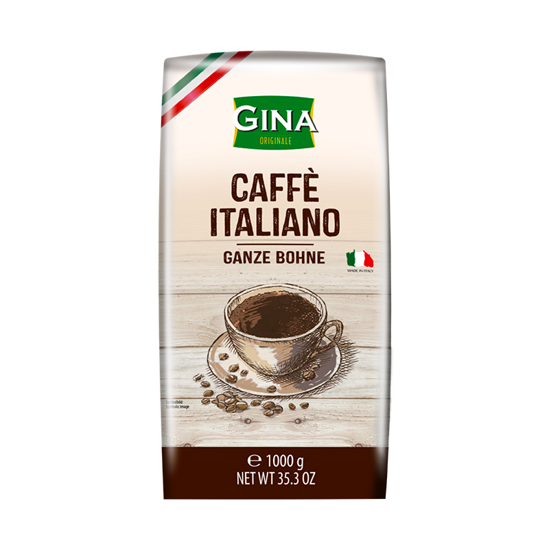 GINA Kaffee Italiano is a whole bean coffee roasted in the traditional Italian style. Its intense roasting gives it a strong, full flavor, making it the ideal choice for preparing authentic espresso. This blend will bring the authentic atmosphere of an Italian café into your home.