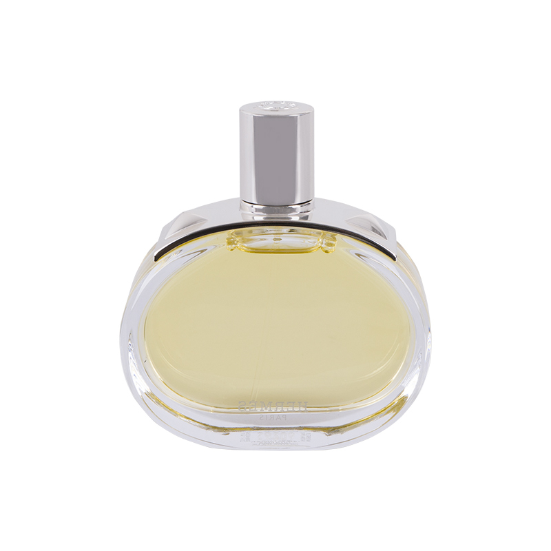 Designer Philippe Mouquet was inspired by the iconic Collier de Chien bracelet. The bottle combines the power of pyramid studs with delicate elliptical lines, giving it the appearance of a piece of jewelry. The bottom features a detail in the form of a final stud – a typical play on details that is characteristic of Hermès.