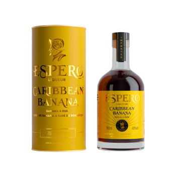 Ron Espero Caribbean Banana is an exceptional rum liqueur that combines 7-year-old quality Dominican rum with natural banana and creamy chocolate extracts. Ideal for those who love sweet but not overly sweet flavor profiles and are looking for the perfect addition to cocktails or for sipping on its own.