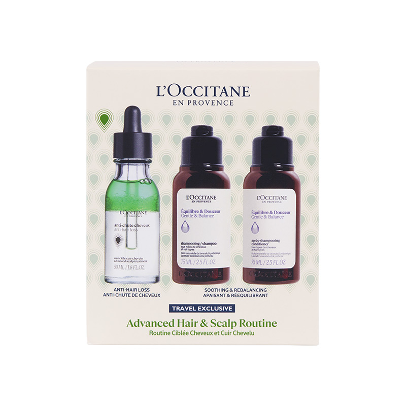 Discover our three iconic hair care products in a travel size to take them with you everywhere you go. The combination of the Shampoo 75ml and the Conditioner 75ml will soothe and rebalance the scalp, making the hair lighter, softer and shinier. Used on top of the routine, the Anti Hair Loss Treatment 50ml will act on the hair life cycle to prevent your hair from falling out. Day after day, hair seems to regain its vitality, and the scalp appear less visible.