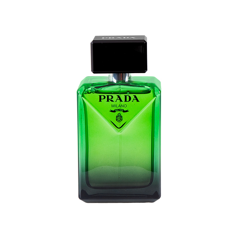 Prada Paradigme represents a new era of men's fragrances that breaks with convention, just like its female counterpart, Paradoxe. With its inverted fragrance pyramid and inverted triangle-shaped bottle design in green and black coated glass, it reflects the spirit of the Prada brand – intellectual, innovative, and elegant.