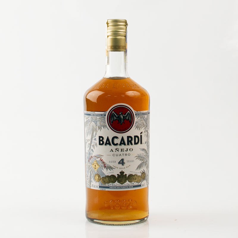 BACARDÍ Añejo Cuatro. A delicious gold rum, ever drop barrel-aged for four years under the Caribbean sun. Perfect for creating elevated cocktails and celebrating everyday moments with your group of friends Taste: Notes of mild vanilla, toasted oak, ...