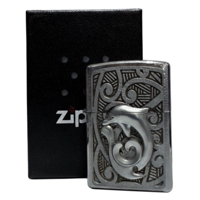 Zippo chrom gebürstet Plakette "Maori Dolphin" 2004495