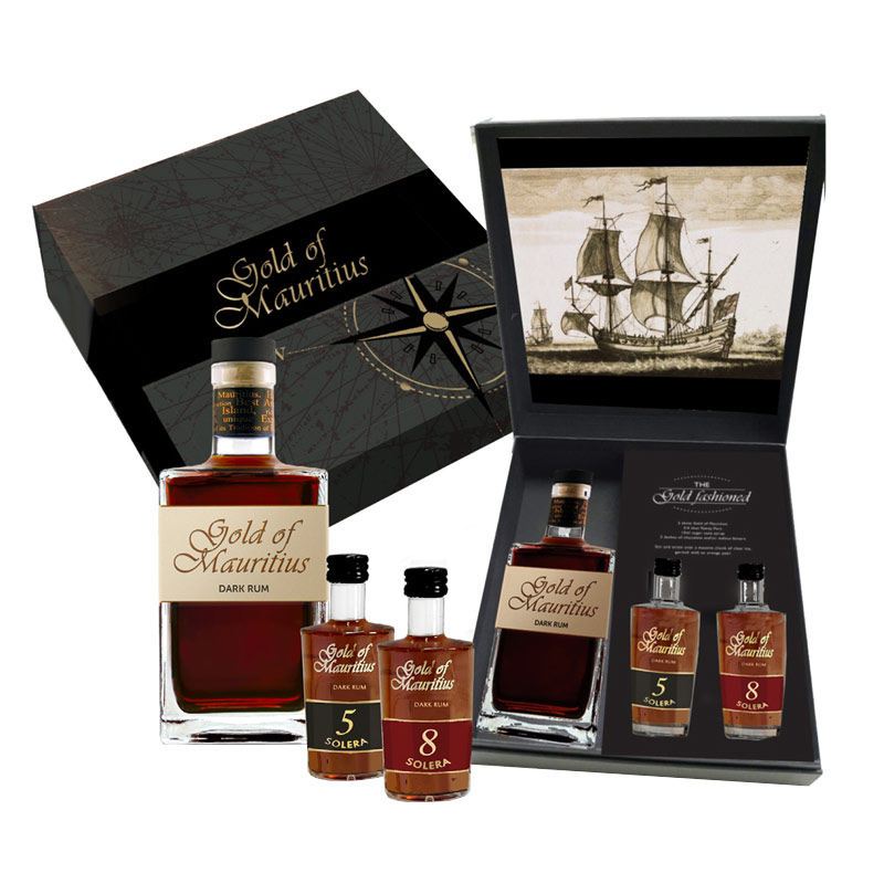 Gold of Mauritius Dark Rum Giftbox is a trilogy of premium rums that reflects the rich history and vibrant culture of Mauritius.