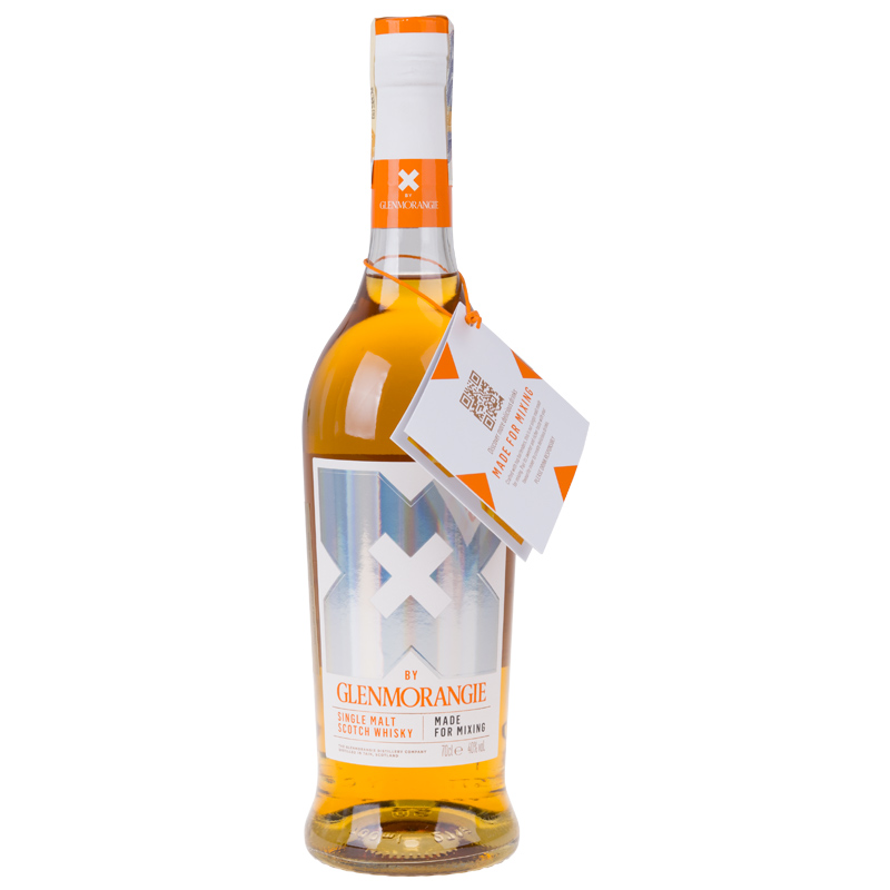 New single malt whiskey from the Glenmorangie distillery in a cocktail set. The package contains: 1x X by Glenmorangie 70 cl, 2x cocktail glass, 2x stainless steel straw, 1x mixing spoon, 1x cocktail manual. This whiskey was created by the best bartenders and its sweeter flavor profile predisposes it to create endless combinations for fantastic yet simple drinks. This delicious whiskey is a parade of flavors, from sweet pear and vanilla to orange sorbet and chocolate fudge. Aged in a combination of bourbon barrels and new charred American oak barrels.