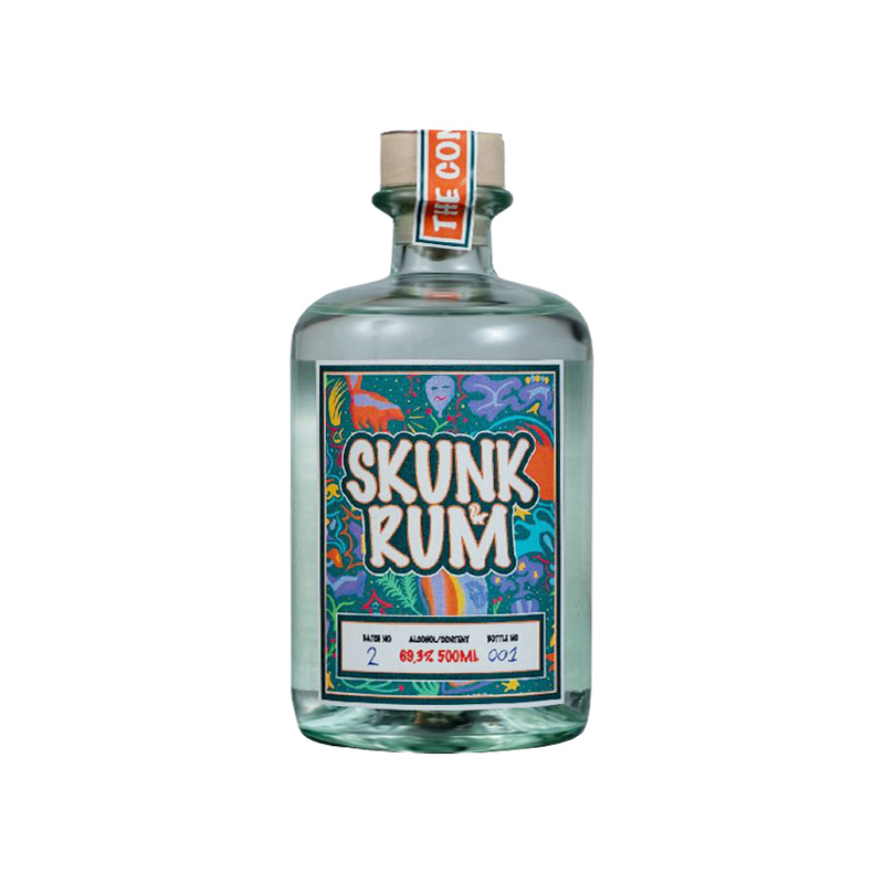 SKUNK is a brand of Danish sustainably produced rum. Each batch differs due to the use of different types of fermentation and distillation methods. The goal is to create four batches with different flavor profiles in the first year.